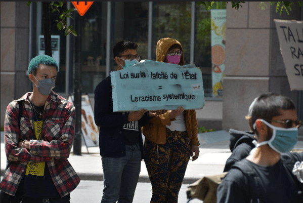 Dès lors, dans quelles structures devons-nous unir, investir et concentrer nos forces en vue d’organiser la résistance à cet assaut en règle lancé contre nos camarades portant le hijab et, du même fait, contre l’ensemble des classes exploitées? Il pourrait être tentant de se rabattre dans un premier temps sur les formes historiques du mouvement ouvrier. En effet, l’appareil syndical constitue encore à ce jour le mode d’organisation de la classe laborieuse et de défense de ses intérêts propres dont la légitimité jouit de loin de la plus haute reconnaissance. Par ailleurs, l’appui matériel et légal dont firent preuve la plupart des centrales syndicales québécoises à l’égard des revendications de salarisation misent de l’avant par les stagiaires en enseignement, pourrait être perçu comme un présage de leur engagement futur aux côtés des milliers de travailleur·ses et stagiaires −majoritairement racisé.es− qui pâtiront de cette nouvelle loi. Or, les mêmes raisons qui nous mènent à nous détourner de tout organe partidaire bourgeois, aussi progressiste se veut-il, nous conduisent également à conserver une méfiance sévère ainsi qu’une prudence lucide quant aux capacités réelles des institutions syndicales à faire front auxdites politiques racistes.